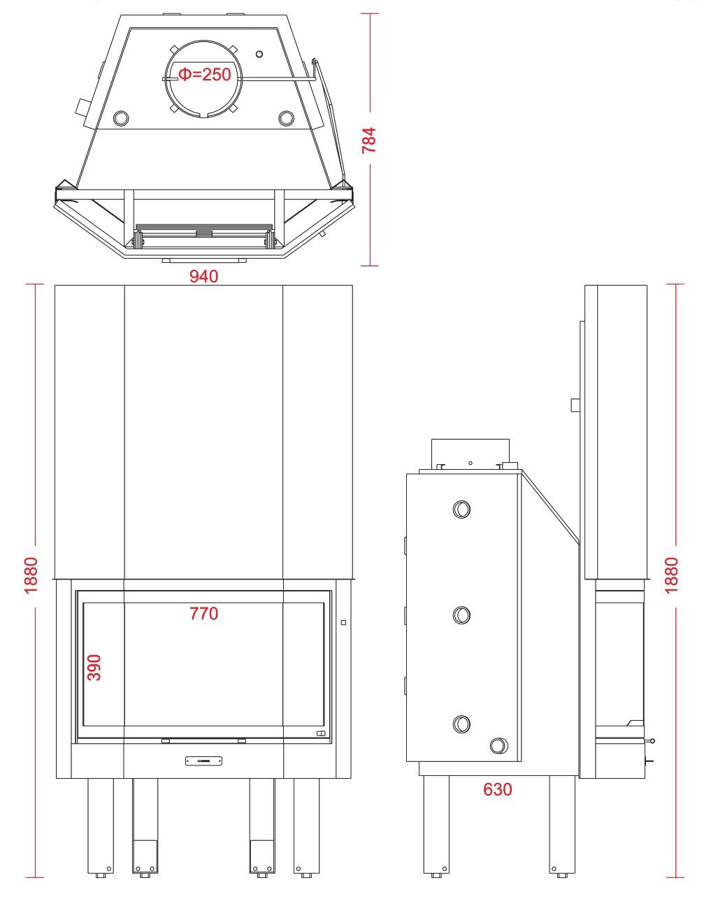 – Κεραμικό τζάμι 4mm υψηλής αντοχής έως 750°C, της Γερμανικής εταιρίας SCHOTT.